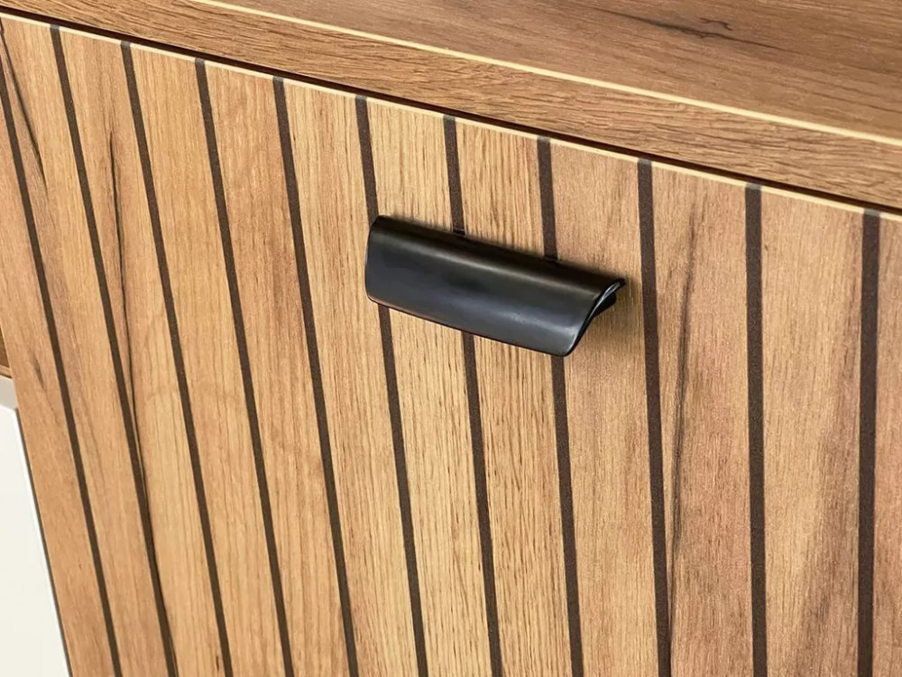 Состоит из: тумбы с дверями, выдвижного ящика и открытой секции.