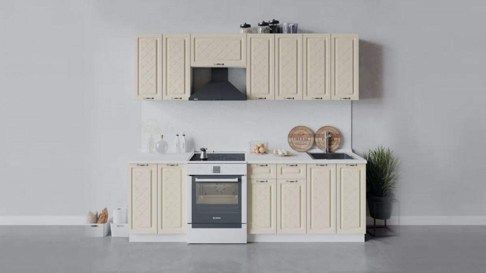 Кухонный гарнитур «Бьянка» длиной 200 см Дуб крафт золотой/Дуб ваниль