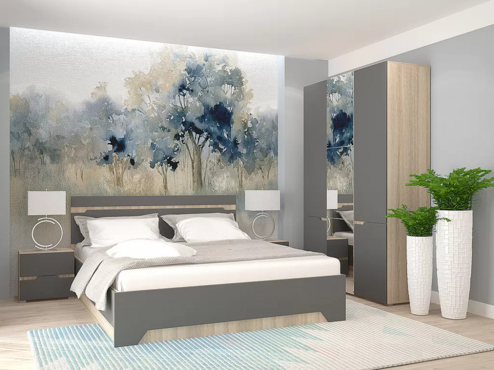 Спальный гарнитур с 3-х створчатым шкафом Анталия Сонома-Графит софт в Нижневартовске
