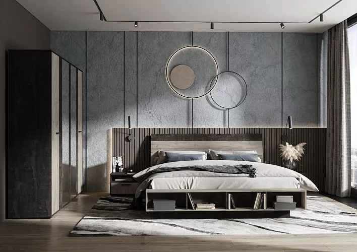 Материал корпуса-ЛДСПМатериал фасада-ЛДСПЦвет корпуса-Камень железныйЦвет фасада-Камень железный, дуб крафт серый
